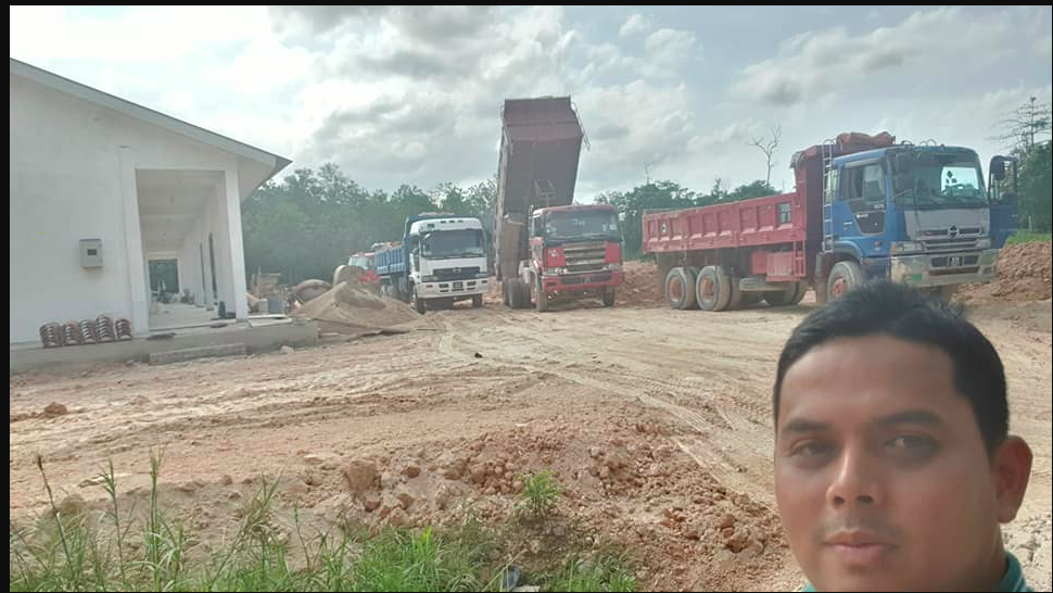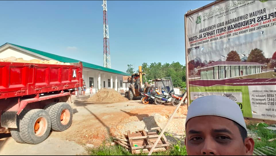 Pengerusi SRITI, Ustaz Muhammad Alif sedang berada di tapak sekolah melihat aktiviti tambun tanah